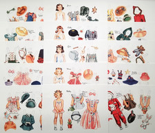 New 4 Page 40s 50s Paper Doll Vintage Repro Kid Toy Illustrator Hilda Miloche