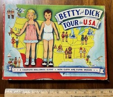 Vintage 1940 paper toy dolls Betty & Dick Explore the USA Not Complete