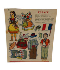 Vintage AROUND-THE-WORLD Cut-Out Paper Dolls FRANCE Box Panel Toy c. 1950 Art