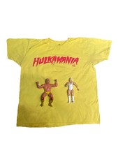 Vintage Hulk Hogan Hulk Mania Yellow T-Shirt And WWF Action Figure Figures Lot