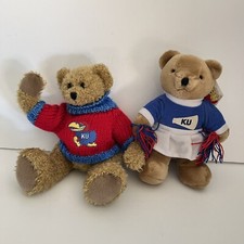 Lot Of 2 Different Kansas University Jayhawks Vintage Plush Stuffed Toy Bears