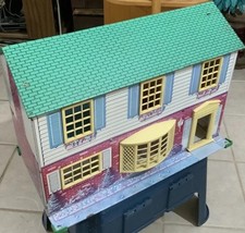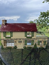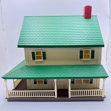 Vintage Plastic Train O Scale Toy Dollhouse Playset Two Story House Green Roof