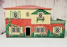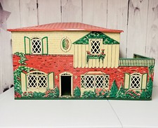 Vintage Marx 1950/60s Tin Metal 2 Story Colonial Dollhouse Lithograph Toy Patio