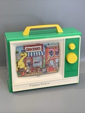 Vintage SCROLLING SESAME STREET TV TELEVISION MUSIC BOX Fisher Price WORKS!