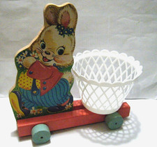 Vintage 60s Fisher Price Easter Bunny Roll / Pull Toy #303 With Original Basket
