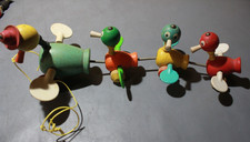 VINTAGE 1956 FISHER PRICE MOMMA DUCK & BABIES WINGS MOVE WOOD PULL STRING TOY