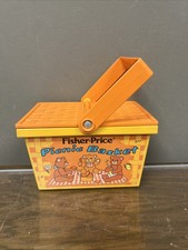 VINTAGE 1974 Fisher Price Teddy Bear Toy Picnic Teddy Bear Basket