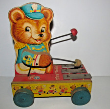 Vintage 1948 Fisher Price Teddy Zilo Xylophone Musical Wooden Pull Toy