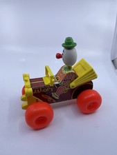 Vintage 1965 Fisher Price Jalopy Preschool Pull along Wooden Toy with Clown G2