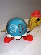 Vintage 1962 Fisher Price #773 Pull Toy Tip toe Turtle Original Cord Bell Dings