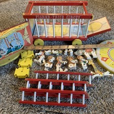 Vintage 1962 Wooden Fisher Price #900 '30 Piece Circus' Wagon with Animals