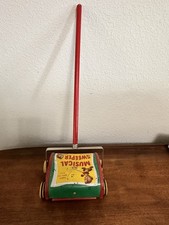 Fisher Price #230 Music Box Sweeper Musical Vintage Wood Metal Push Toy