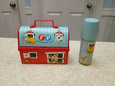 Vintage Fisher Price Mini Toy Farm Barn Lunch Box Kit Silo Thermos 549 1962 VTG