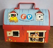 vintage Fisher-Price Red Barn Farm mini lunch box 549 1962 Toy Play set