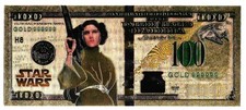 Princess Leia Organa Star Wars .9999 24K GOLD Foil Plated 100 Dollars note