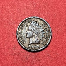 (1) Beautiful Toned Antique 1898 Indian Head Cent/Penny CHOICE VF-VERY FINE