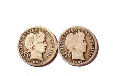 A Lot of two silver Barber dimes dated 1904 1907 Good/VG Cond set RGR 551