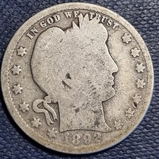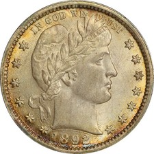 1892 Barber Quarter Philadelphia Mint 90% Silver US 25c coin