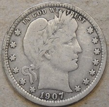 1907 Barber Quarter 25c Nearly F as Pictured r