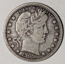 1909 Barber Silver Quarter 25c Very Fine VF BSQ5
