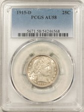 1915-D BARBER QUARTER - PCGS AU-58 FLASHY & LUSTROUS!