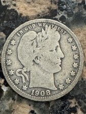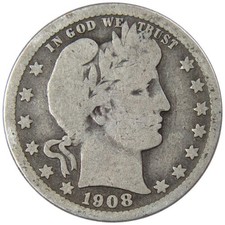 1908-s Barber Quarter, Better Date, Better Condition, Free Shipping