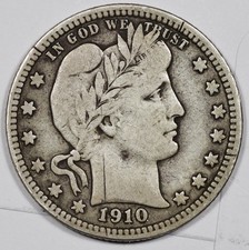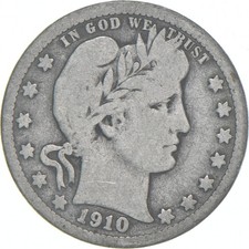 1910 Barber Quarter Silver 25C United States Coin – Circulated