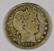 1912-P "Liberty Head" Barber Quarter Dollar Coin, Very Good