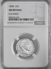 1898-P 25C BARBER SILVER QUARTER NGC AU DETAILS "CLEANED" #8405236-030