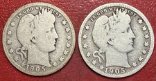 Pair of 1905-S Barber Quarters. (2) Better Dates.