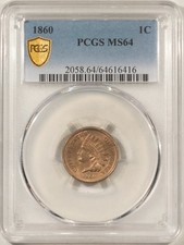 1860 INDIAN HEAD CENT - PCGS MS-64, FRESH!