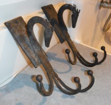 ANTIQUE/VINTAGE PAIR HAND FORGED IRON DRAGON COAT HANGER ,HOOKS,ARTS CRAFTS 9"