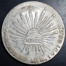 ERROR Defective Planchet Mexico Second Republic 8 Reales 1887 Pi MR Potosi Mint