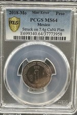 MINT ERROR. RARE Un Peso México Struck On 7.4g CuNi Plan. Very Few In Existence.