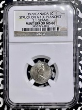 1979 Canada Small Cent Struck On 10 Cent Planchet Error NGC MS66 Lot#G9790 2.1 G