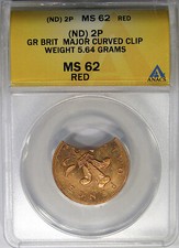 2000s G BRIT 2P ANACS MS62RD CLIPPED PLANCHET ~ MAJOR MINT ERROR!