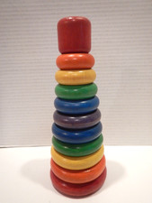 Vintage Playskool Wood Wooden Stacking Rings Toy Toddler Preschool VINTAGE