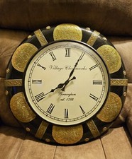 Antique Wooden Clock Design Elegant Brass Finish Village Clockworks 17"