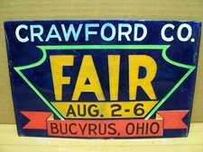 Vintage NOS Crawford County Fair Bucyrus Ohio Advertising Sign