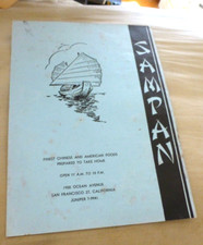 VINTAGE MENU SAMPAN FINEST CHINESE FOOD OCEAN AVE SAN FRANCISCO CA 1950's