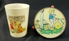 Vintage Childs Cup Dog w Metal Spin Toy Ovaltine Beetleware Little Orphan Annie