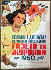 USSR large propaganda poster original 1960 advertising, Soyuzpechat