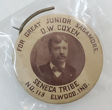 Antique Rare Indian Seneca Tribe No. 113 Elwood Ind. OW Coxen Political pin