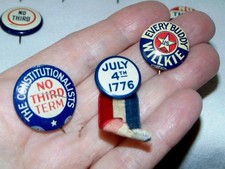 13 Antique Presidential & Political Campaign Button Pins, WILKIE, ROOSEVELT