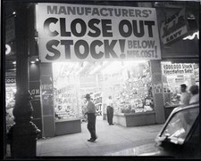 Store with Large Sign Advertising "Closeout Stock" - New York, - 1953 Old Photo