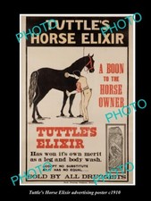 OLD POSTCARD SIZE PHOTO OF TUTTLES HORSE ELIXIR ADVERTISING POSTER c1910