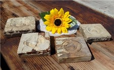 2 VTG. Bullseye Stained Plinth Wood Blocks Reclaimed Salvage 4 3/4" X 10" X 1"