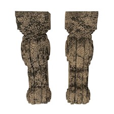 Set of 2 Solid Wood Carved Corbels Wall Bracket Shelves Heavy Pair aged wood