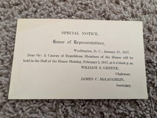 Antique 1917 US House Republican Caucus Notice Washington DC