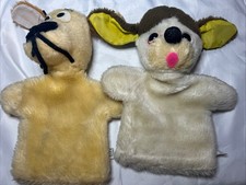 Set of 2 Vintage Puppy Dog Hand Puppet 11" Plush Stuffed Animal Korea 10"